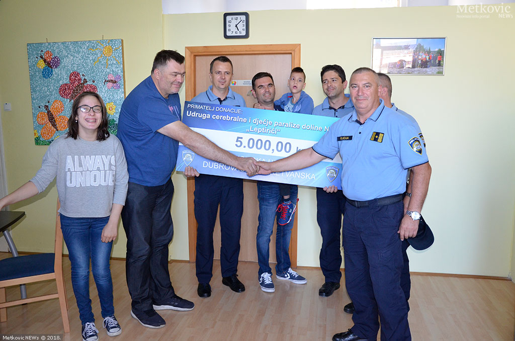 Novac je prikupljen dobrovoljnim novčanim prilozoma policijski službenika. Udruzi cerebralne i dječje paralize doline Neretve Leptirići tako je uplaćeno 5 500 kuna, a na simboličoj predaji čeka u ptrostorijama udruge, ček je primio predsjednik udruge Mario Jurković koji su mu uručili zamjenik načelnika Policijske uprave Miro Bajo, načelnik Policijske postaje Metković Zlatko Bubalo, načelnik Postaje granične policije Metković Jurica Volarević i načelnik Policijske postaje Ploče Sretan Marević.