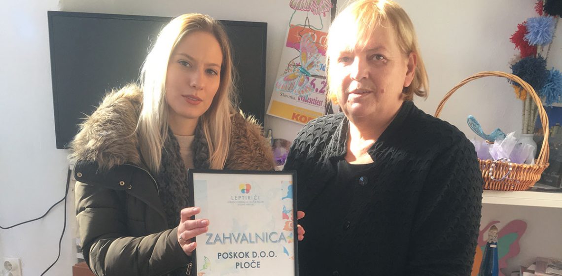 Sjedište Udruge Leptirići u Pločama u ime tvrtke Poskok d.o.o. iz Ploča posjetila je gđa. Dženi Nikolac uručivši članici Upravnog odbora Mirjani Jović ček u iznosu od 2.000,00 kuna.