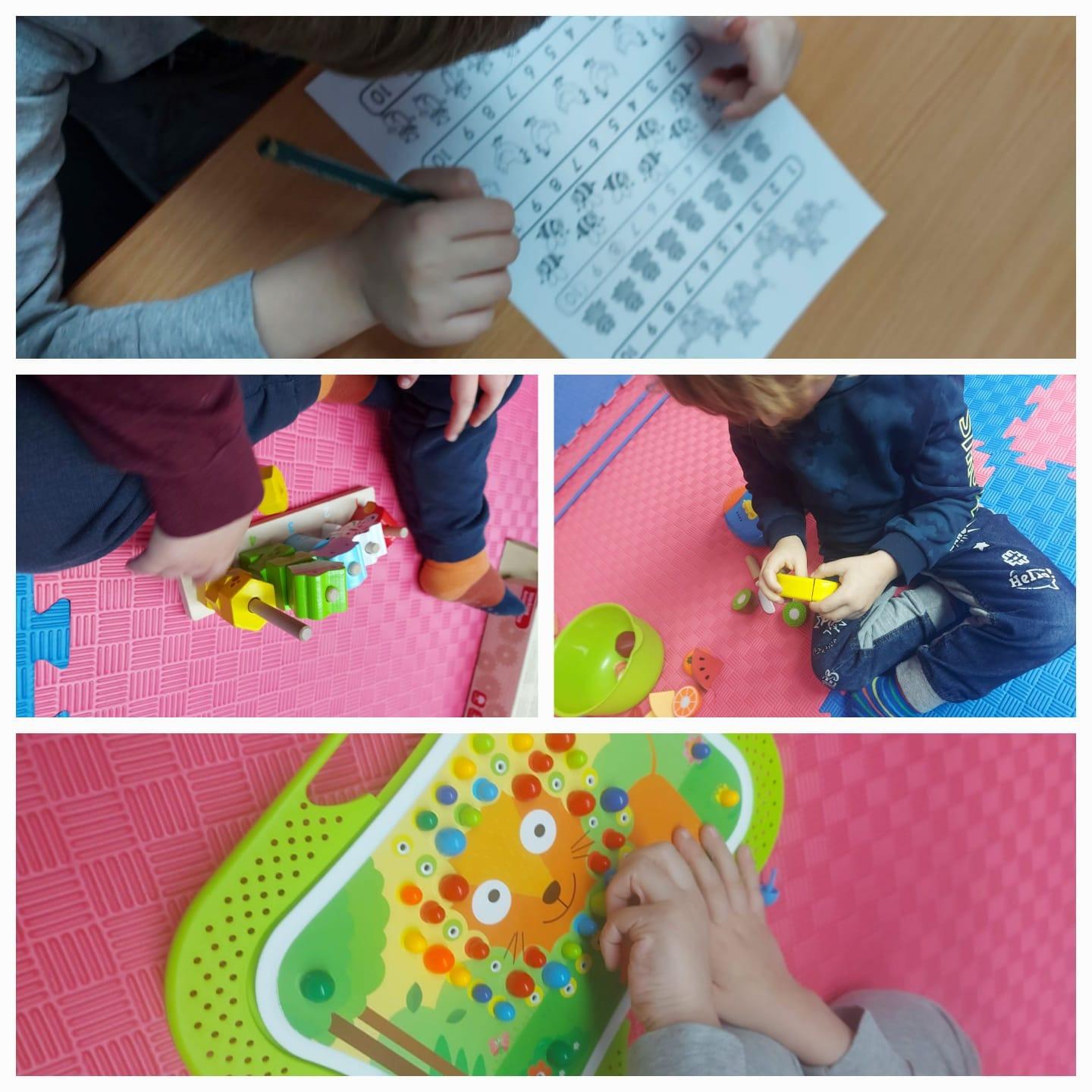 Potičemo razvoj fine i grube motorike, grafomotorike, vizualne percepcije, kognitivnog razvoja, igre, socijalne i emocionalne vještine, vještine svakodnevnog života.