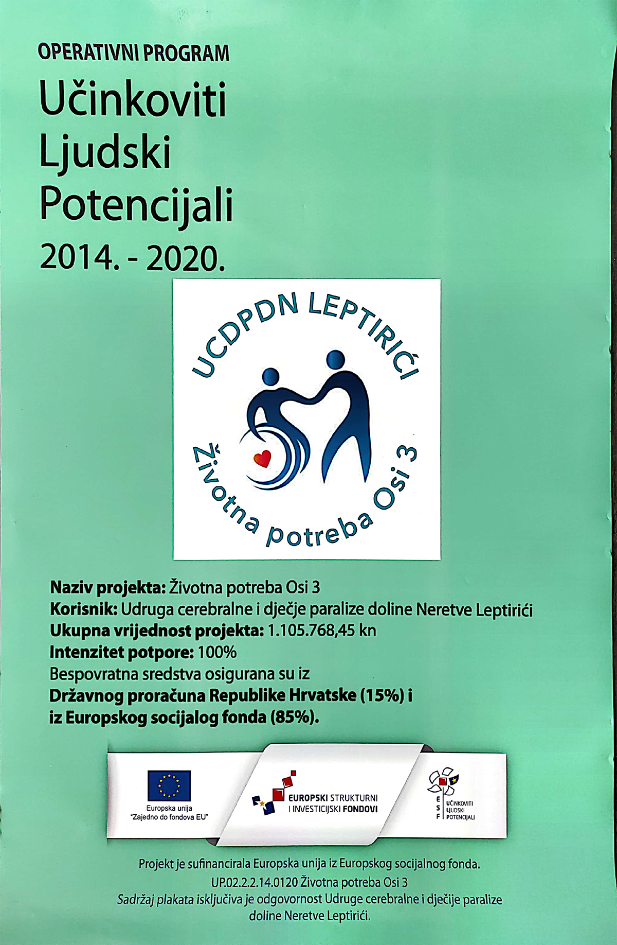 Projekt „Životna potreba OSI 3“ nastavak je višegodišnjih projekata usmjerenih na osiguranje osobnih asistenata za 11 korisnika – članova UCDPDN Leptirići. Uzimajući u obzir da je ciljna skupina već postojeći korisnici na taj način se pridonosi kontinuitetu u pružanju usluga i osigurava se pravo osoba s invaliditetom na život u zajednici te se prevenira njihov smještaj u ustanove.